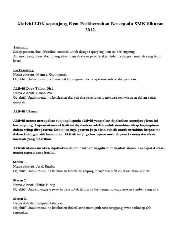 Semua peserta berhimpun untuk mendengar taklimat awal dari ketua fasilitator. Bunyi paling menarik aktiviti. Ada pelbagai modul aktiviti ldk yang menarik dan boleh disesuaikan mengikut program dan peringkat umur. Astaka dewan khas smk bandau peralatan.