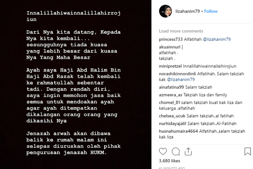 Bapa Liza Hanim Meninggal Dunia Hiburan Mstar