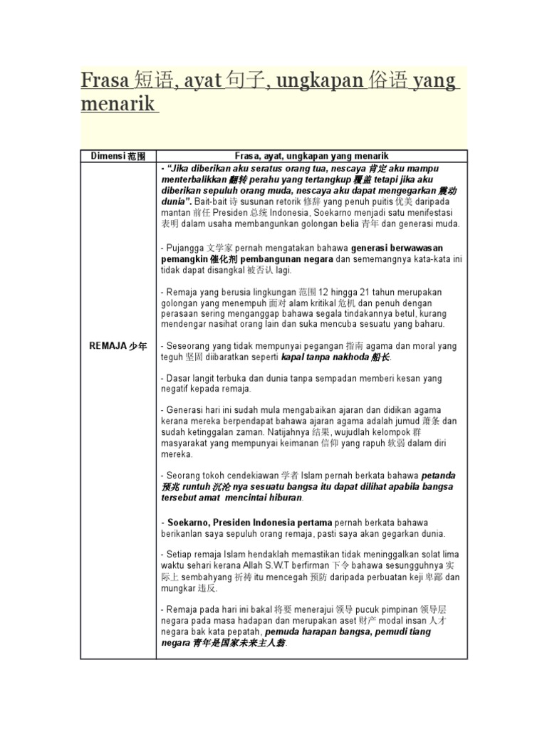 Doc Frasa Ayat Ungkapan Yang Menarik Dan Matang Untuk Karangan Bahasa Melayu Spm Kong Siew Ling Academia Edu
