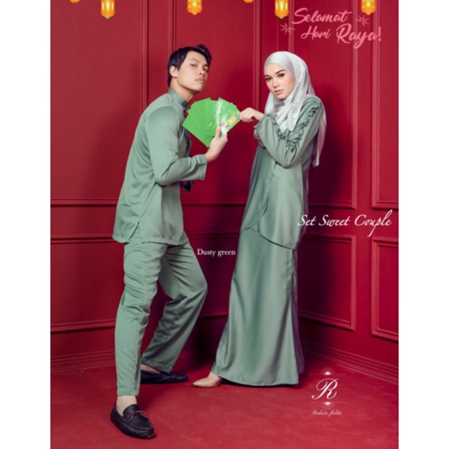 12 12 Sales Offer Dusty Green Set Couple Sedondon Raya Baju Melayu Kurung Moden Dahlia Shopee Malaysia