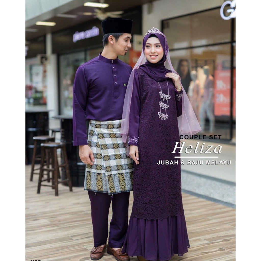Set Couple Sedondon Jubah Moden Lace Heliza Dark Purple Baju Melayu Moden Baju Raya 2020 Shopee Malaysia