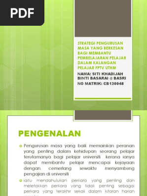 Strategi Pengurusan Masa Yang Berkesan Bagi Membantu Pembelajaran Pelajar Fptv Uthm