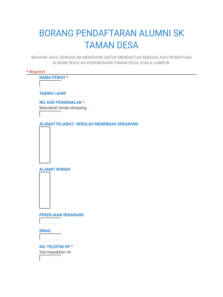 Borang Pendaftaran Alumni Sk Salak