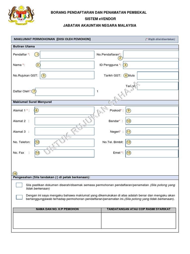 Borang Pendaftaran Dan Penamatan Pembekal Sistem Evendor Jabatan Akauntan Negara Malaysia