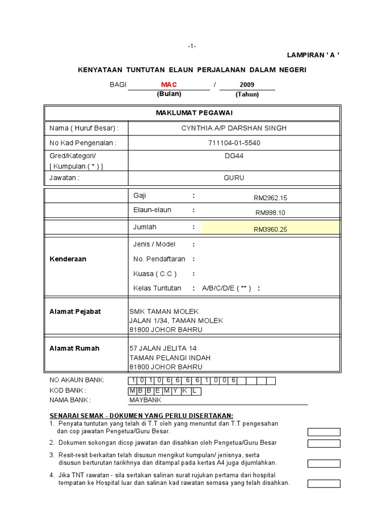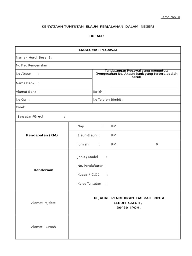 Borang Tuntutan Elaun Perjalanan Dalam Negeri Guru Apdm Kehadiran