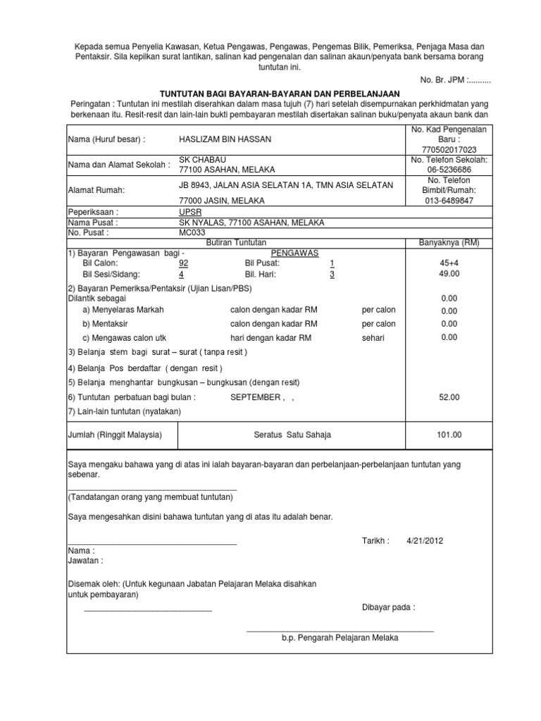 Borang Tuntutan Upsr Pmr Spm