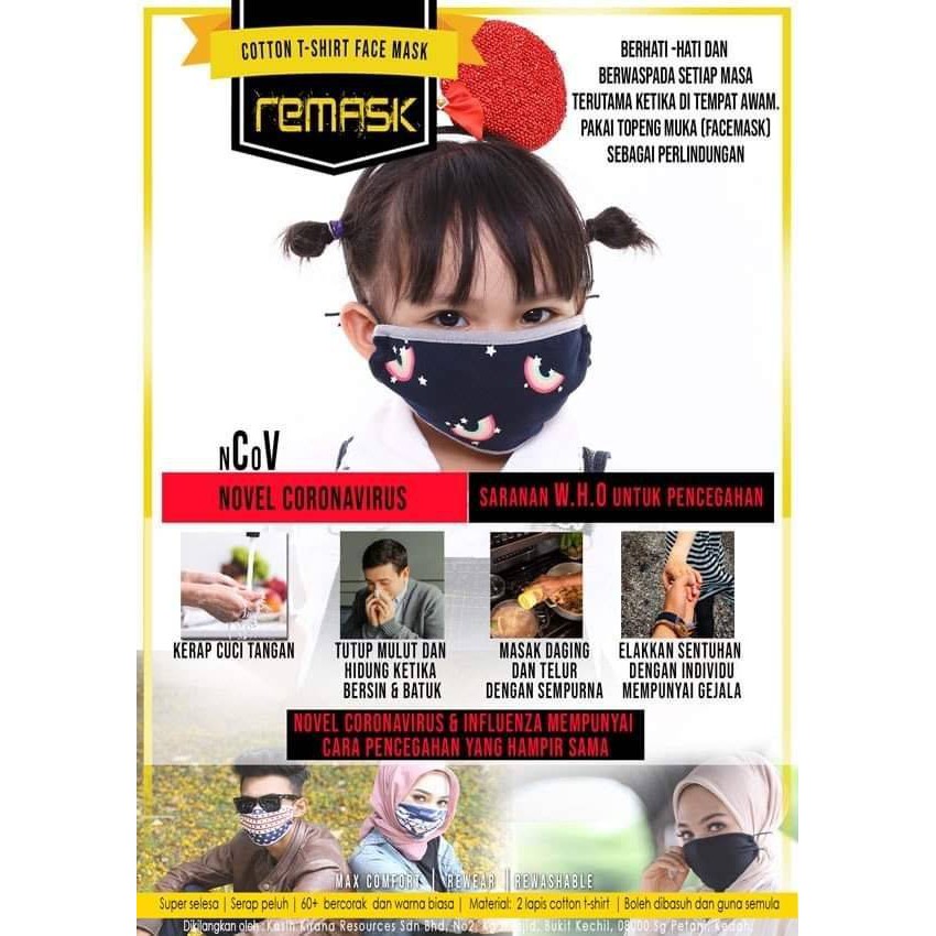 Remask Kids Face Mask 2 Layers Cotton Remask By Mak Kuntum Shopee Malaysia