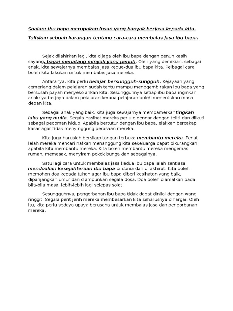 Karangan Upsr Cara Cara Membalas Jasa Ibu Bapa Soalan