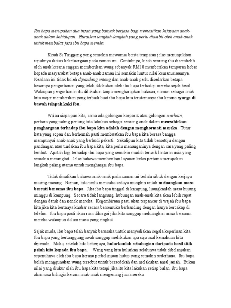 Contoh Karangan Peranan Ibu Bapa Doc Document