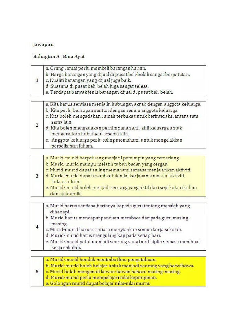 Cadangan Jawapan Bahagian A Bina Ayat Set 4 Pages 1 2 Text Version Anyflip