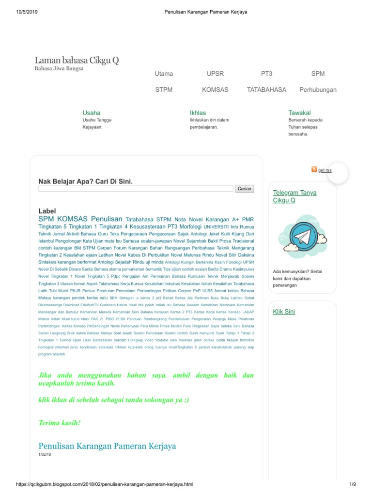 Penulisan Karangan Pameran Kerjaya