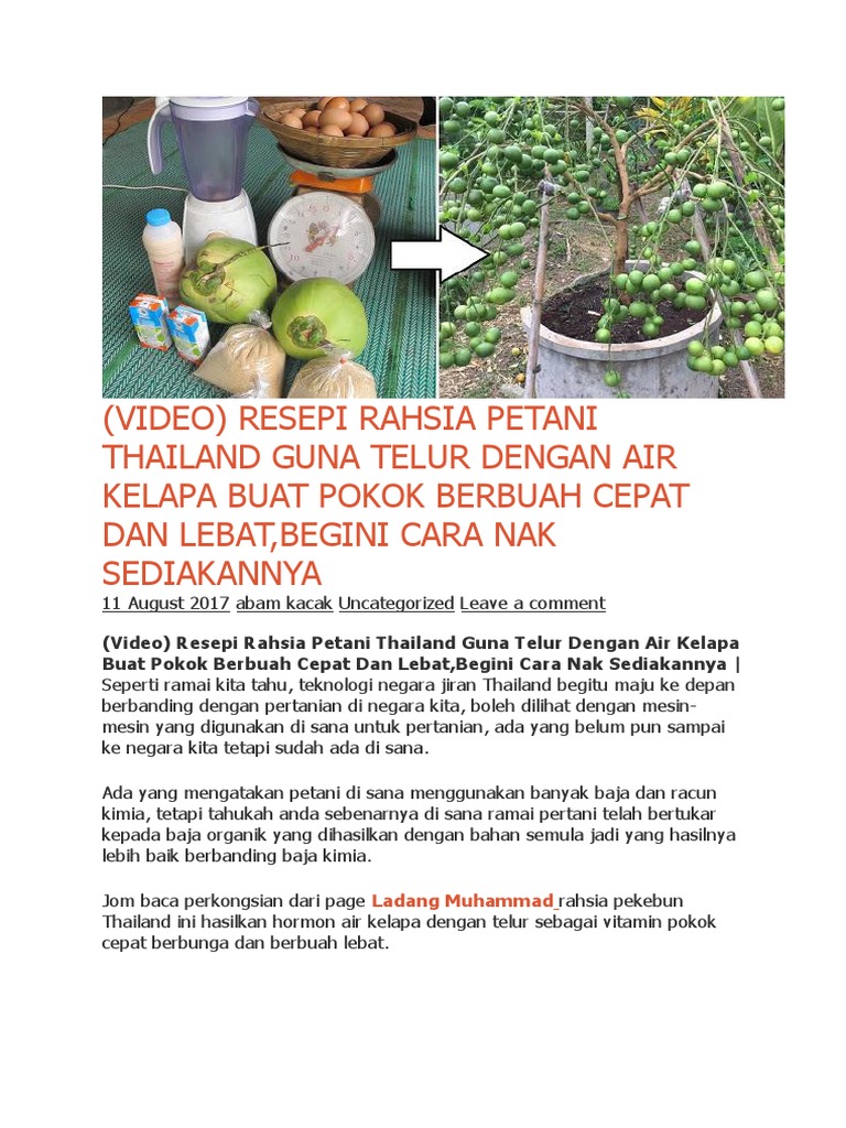 Rahsia Petani Thailand Guna Telur Dengan Air Kelapa Buat Pokok Berbuah Cepat Dan Lebat Semuanya Jdt