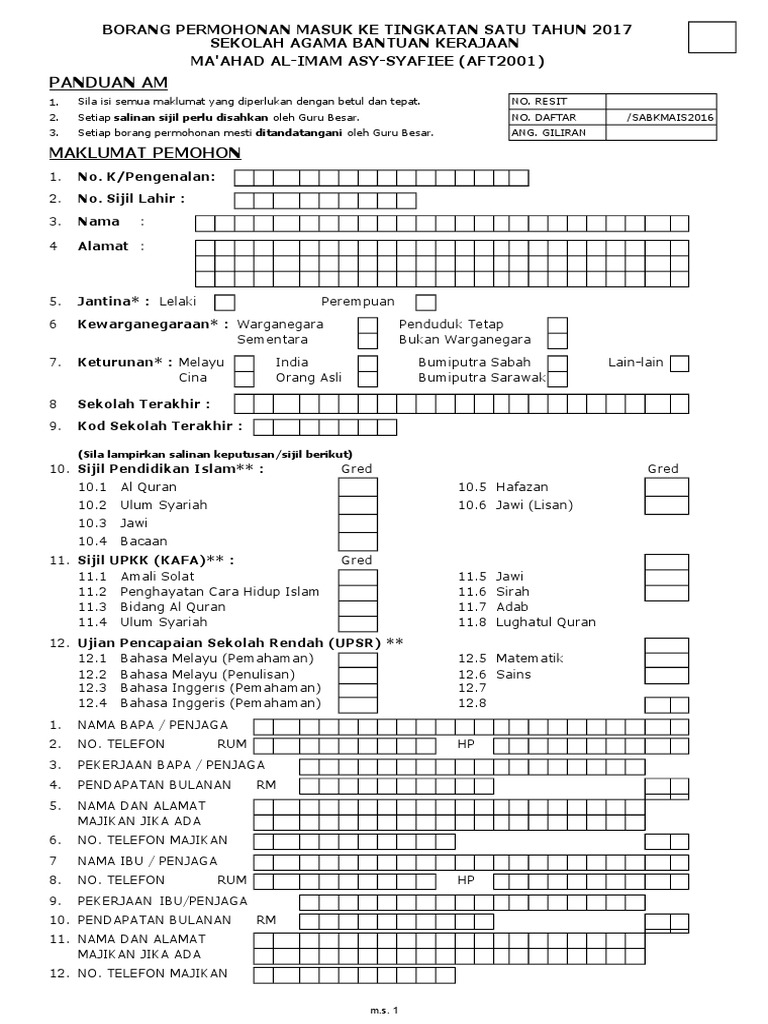 Cara Mengisi Borang Permohonan Mrsm Tingkatan 1 Tingkatan 4 Panduan Bergambar Melur Net