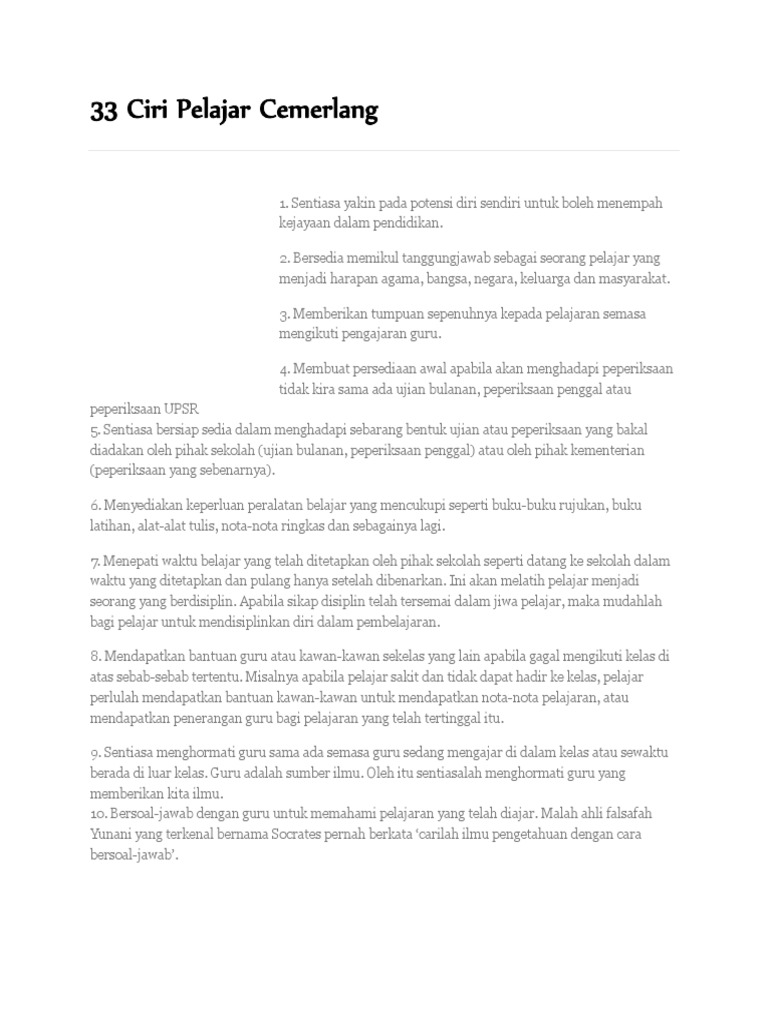 Doc Karangan Bahasa Melayu Pmr Ciri Ciri Murid Cemerlang Ciri Ciri Murid Cemerlang Lai Heng Academia Edu