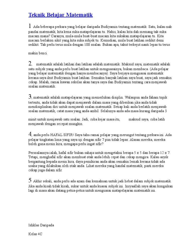 Teknik Belajar Matematik Bijak Matematik Pandai Matematik